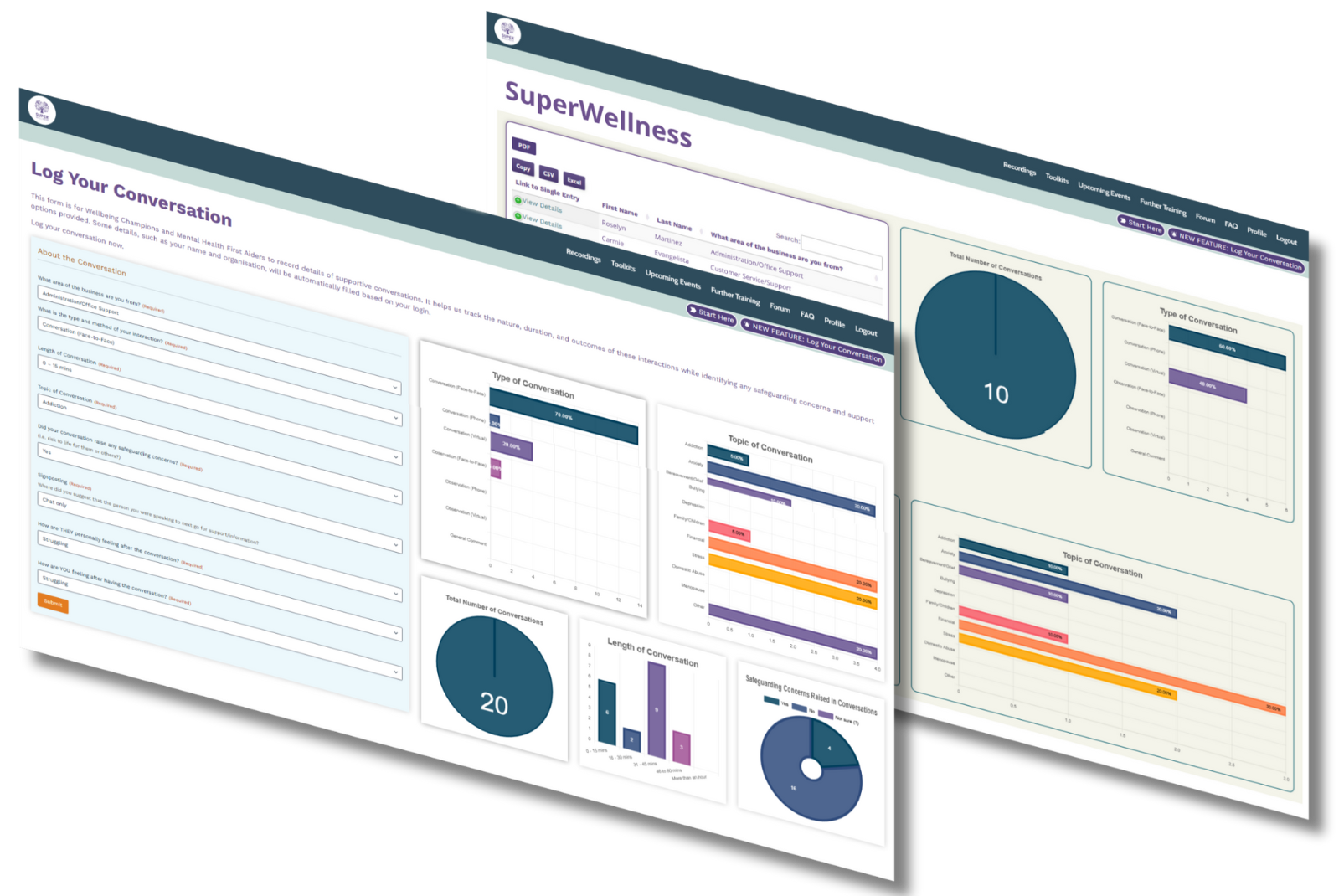 The conversation logging tool within the Catalyst System enables all of your superusers, whether they are line managers, wellbeing champions, Mental Health First Aiders or simply part of your wellbeing team, to record the wellbeing interactions they have.
